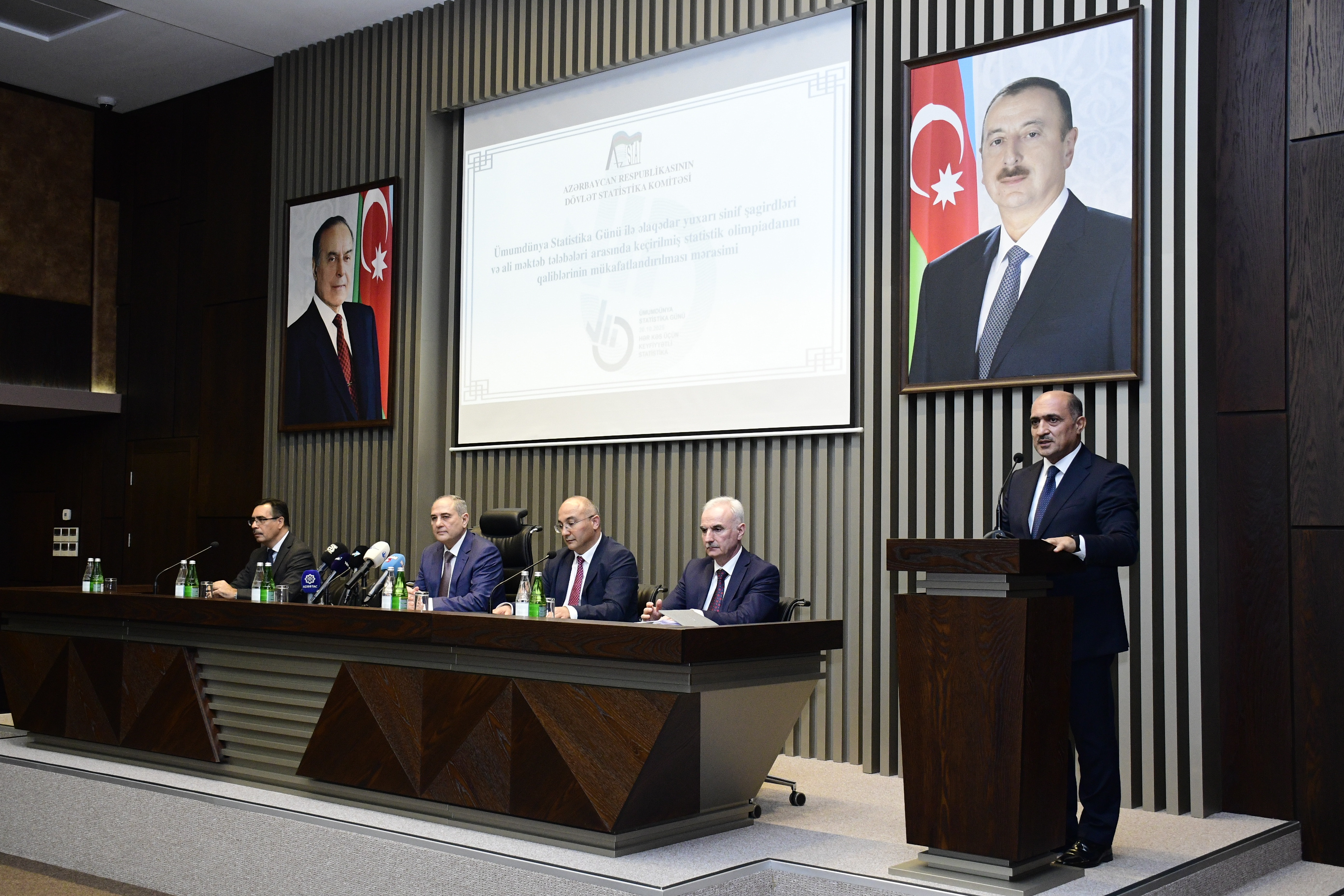 Deputy Chairman of the State Statistical Committee and Chairman of the Organizing Committee, Mr Yusif Yusifov, delivering a report on the results of the statistical olympiad, noted that a total of 3,355 pupils and 198 students participated in the olympiad: “According to the results of the olympiad held among school pupils, Gunel Yafas Gurbanova, an 11th-grade pupil of the Hil village full secondary school named after Karim Karimov in Qusar district, took 1st place; Suat Ziya Novruzov, an 11th-grade pupil of the Qivraq settlement full secondary school in Kangarli district – 2nd place; and Ali Elmaddin Alishov, a 9th-grade pupil of the full secondary school No. 7 named after Aslan Eminov in Imishli city – 3rd place, among students, Murad Chingiz Khalilli, a fifth-year student on Business Administration at the Baku Higher Oil School, won 1st place; Arif Mirabbas Aslanov, a fourth-year student at the same school 2nd place; and Ulvi Gubad Hajiyev, a third-year student on Marketing at the Azerbaijan State Agricultural University – 3rd place”.