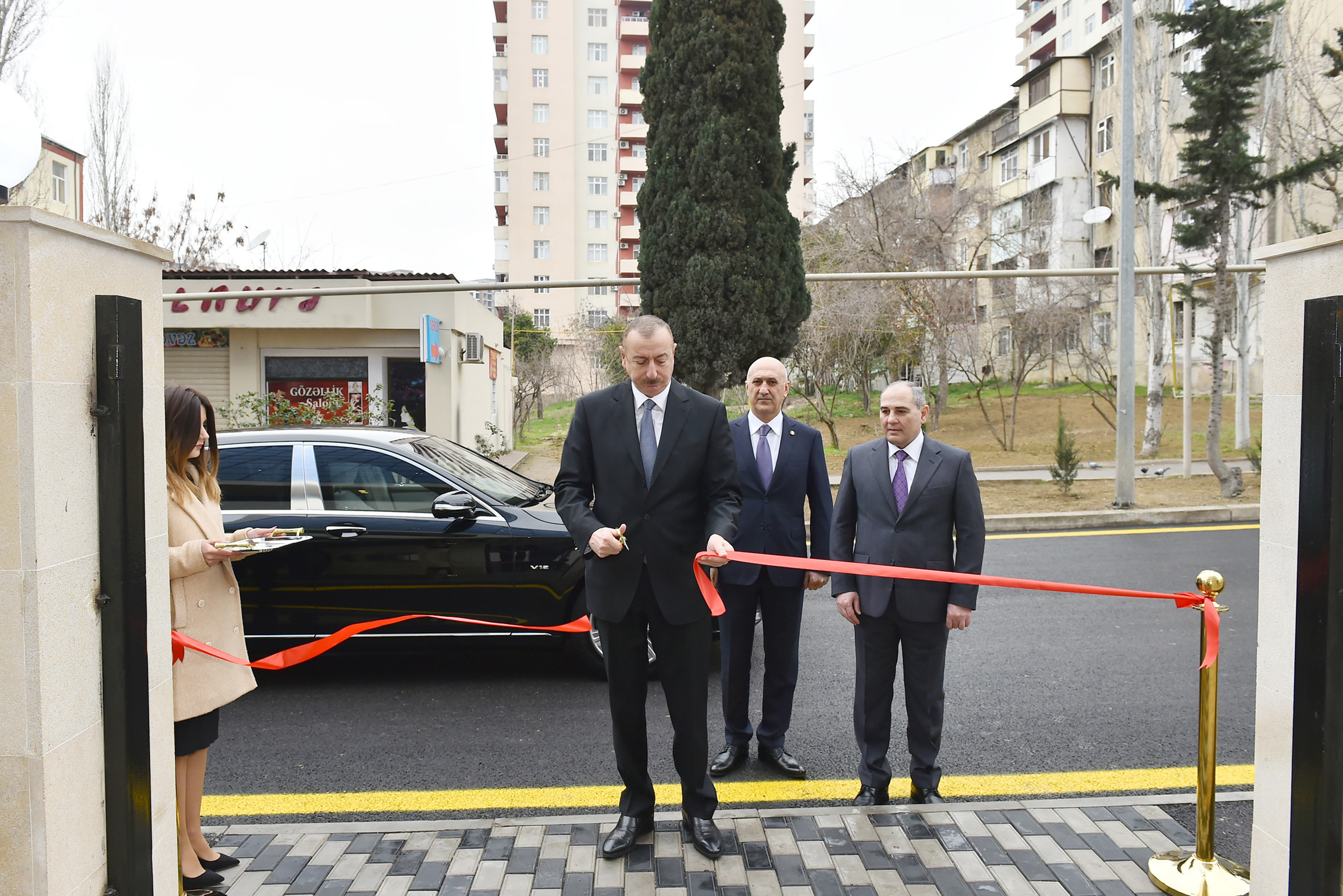 The head of the state cut the ribbon symbolizing the opening of the building.