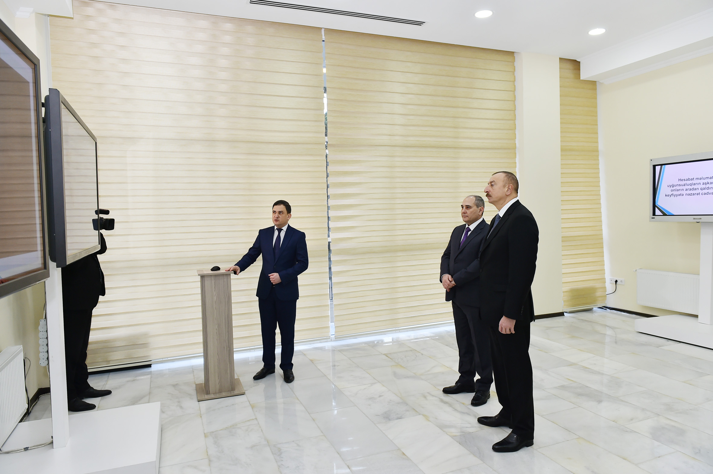 The head of the state was informed about the current situation of the regional departments of Baku City Statistical Office. It was noted that the submitting the new administrative building into use will encourage the regional departments located at various addresses in buildings that do not meet modern requirements and that are rented by Baku City Statistical Office, to operate as a single organizational structure and will contribute to the substantial improvement of the working conditions of the employees.