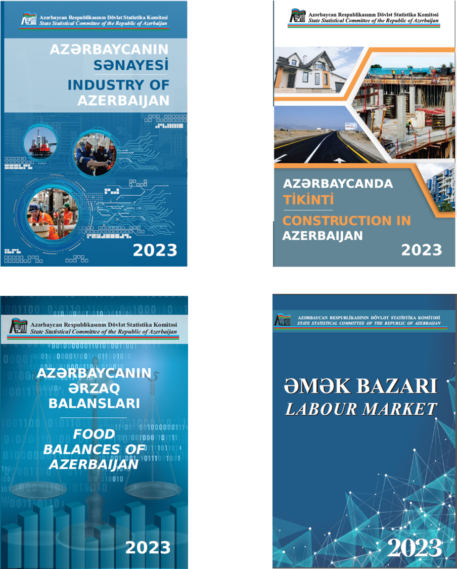 The electronic version of the “Industry of Azerbaijan” yearbook can be found at the link https://www.stat.gov.az/menu/6/statistical_yearbooks/source/industry_2023.zip , the e-version of “Construction in Azerbaijan” yearbook at the link https://www.stat.gov.az/menu/6/statistical_yearbooks/source/construction_2023.zip, the e-version of the “Food Balances of Azerbaijan” at https://www.stat.gov.az/menu/6/statistical_yearbooks/source/food_balances_2023.zip and the e-version of the “Labour Market” at https://www.stat.gov.az/menu/6/statistical_yearbooks/source/emek_bazari_2023.zip.