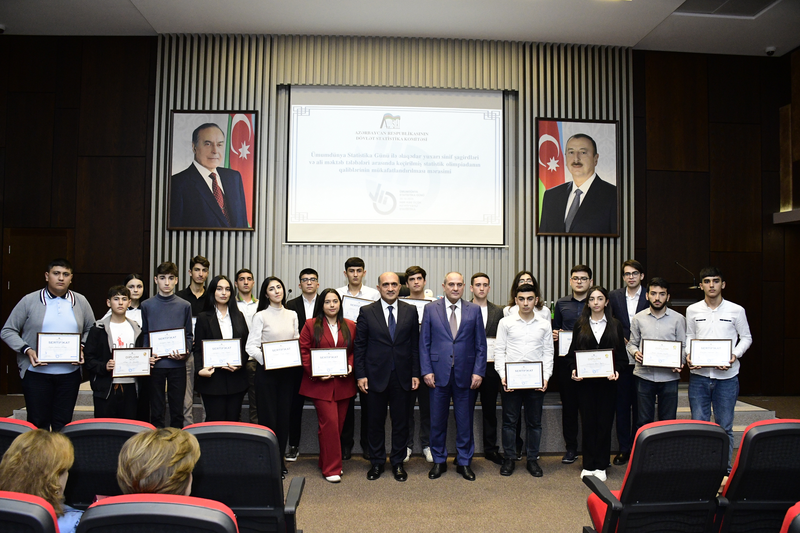 Deputy Chairman of the State Statistical Committee and Chairman of the Organizing Committee, Mr Yusif Yusifov, delivering a report on the results of the statistical olympiad, noted that a total of 3,355 pupils and 198 students participated in the olympiad: “According to the results of the olympiad held among school pupils, Gunel Yafas Gurbanova, an 11th-grade pupil of the Hil village full secondary school named after Karim Karimov in Qusar district, took 1st place; Suat Ziya Novruzov, an 11th-grade pupil of the Qivraq settlement full secondary school in Kangarli district – 2nd place; and Ali Elmaddin Alishov, a 9th-grade pupil of the full secondary school No. 7 named after Aslan Eminov in Imishli city – 3rd place, among students, Murad Chingiz Khalilli, a fifth-year student on Business Administration at the Baku Higher Oil School, won 1st place; Arif Mirabbas Aslanov, a fourth-year student at the same school 2nd place; and Ulvi Gubad Hajiyev, a third-year student on Marketing at the Azerbaijan State Agricultural University – 3rd place”.